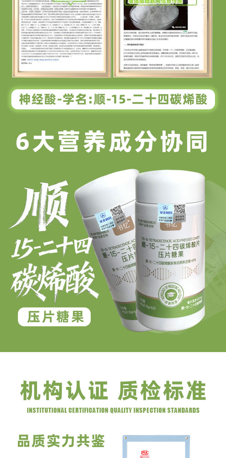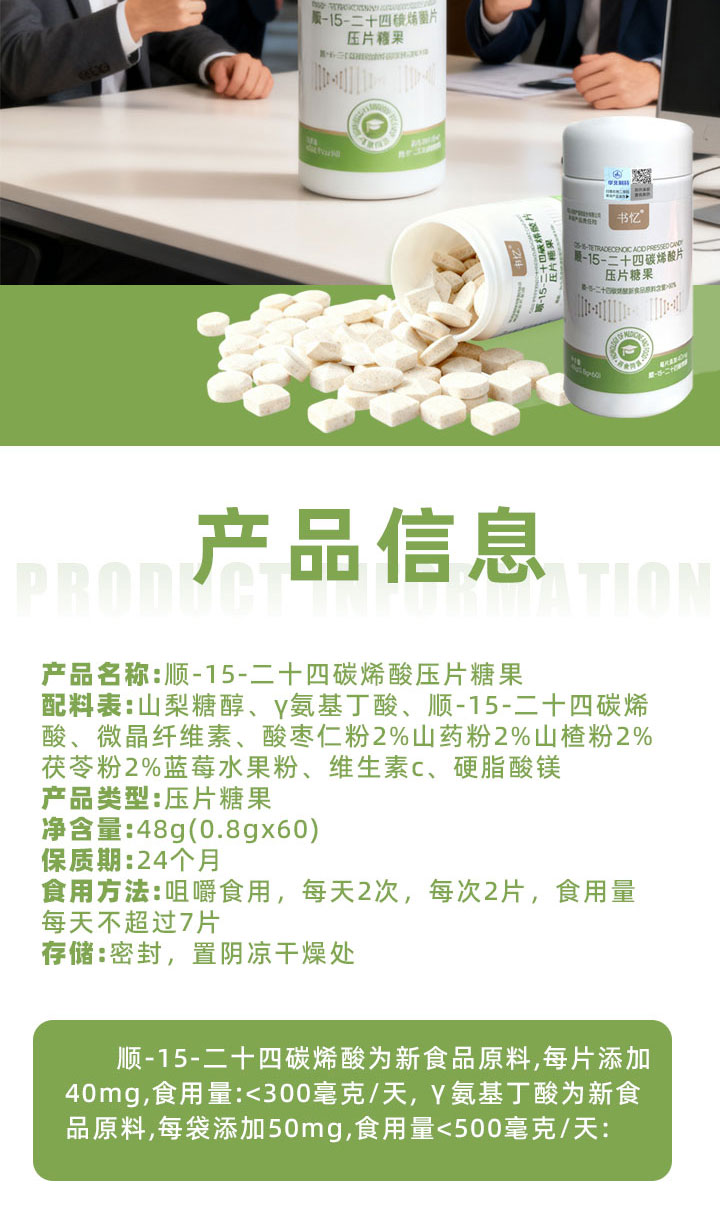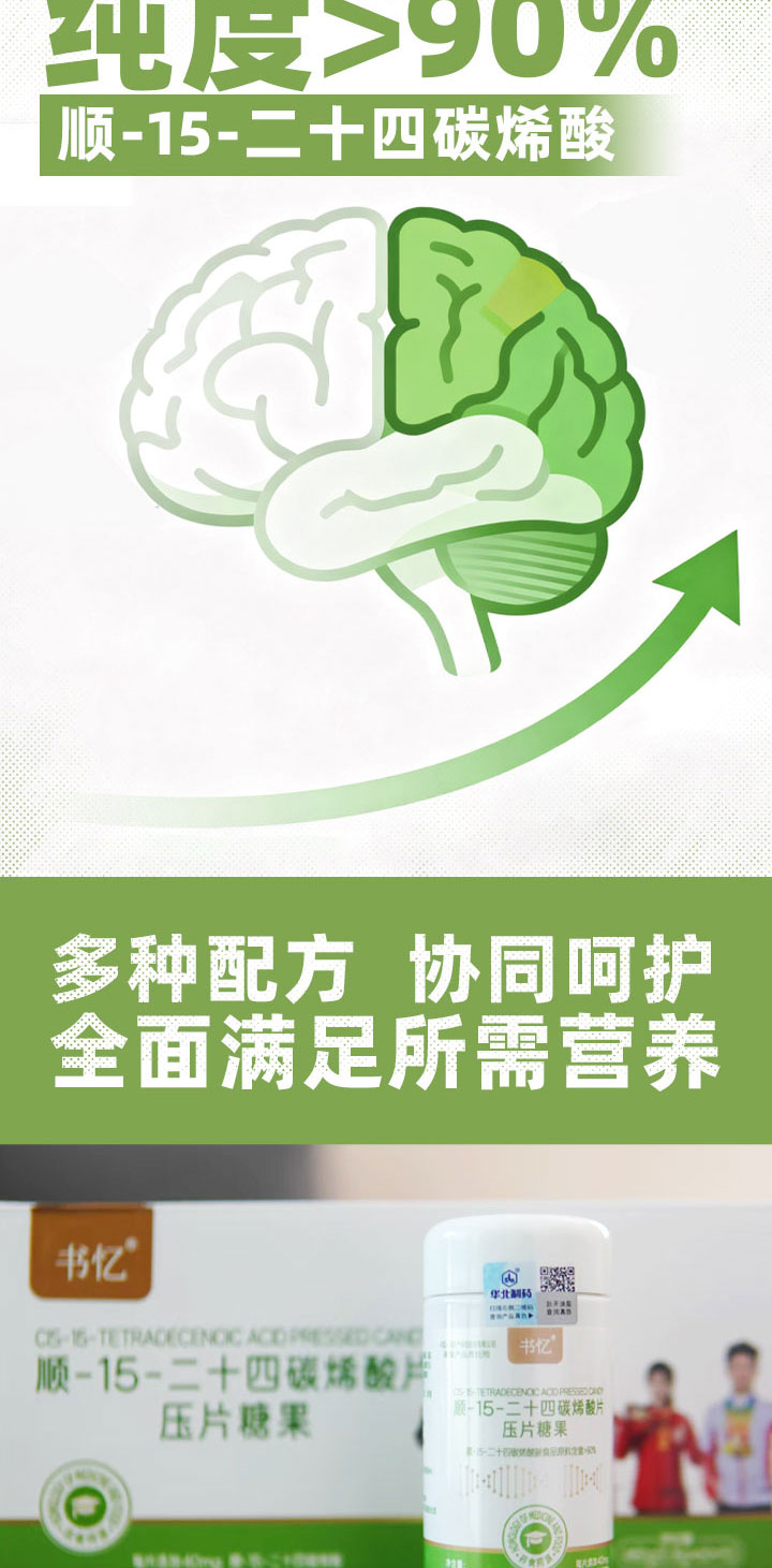 书忆 神经酸 顺-15-二十四碳烯酸压片糖果 焕活脑力 黄金搭档